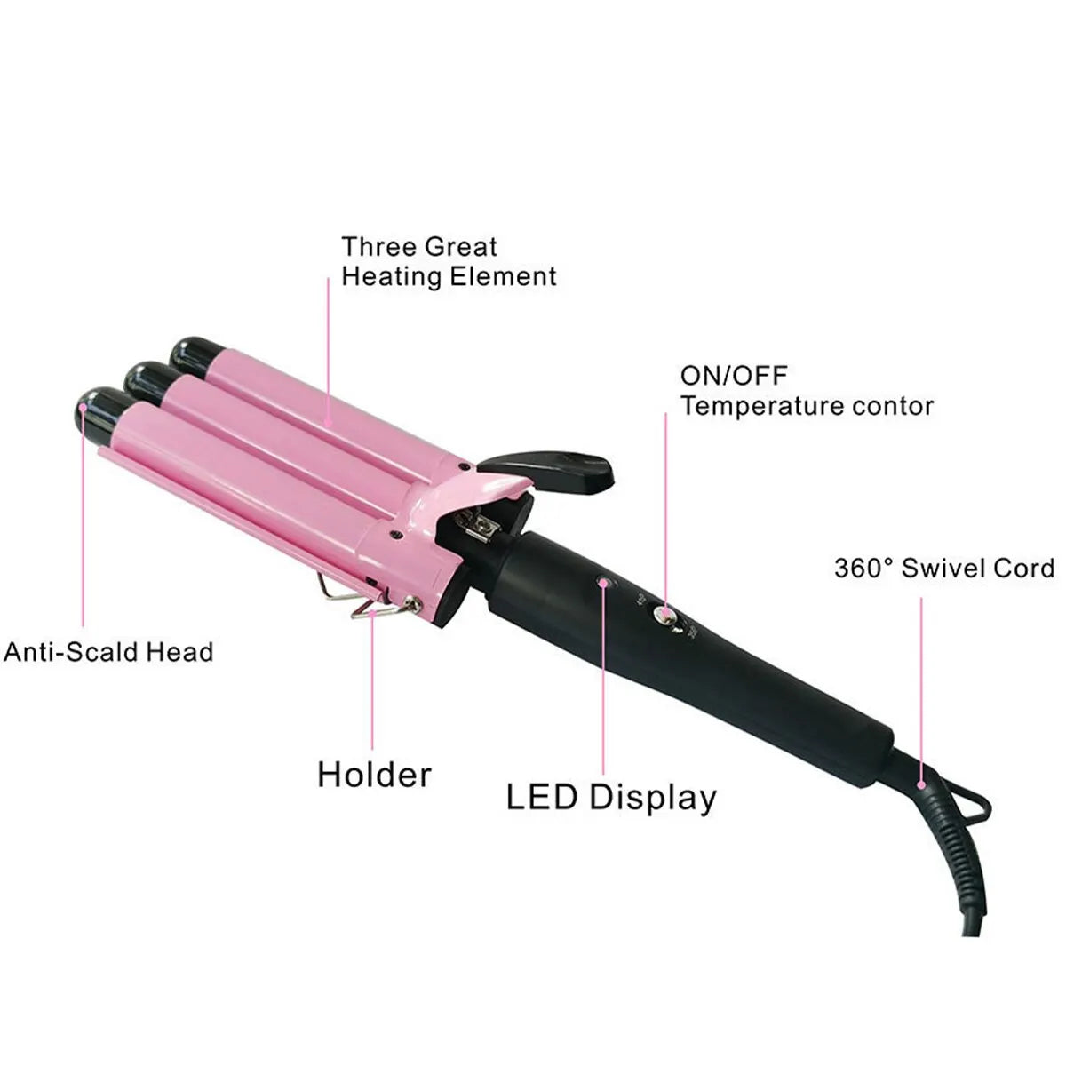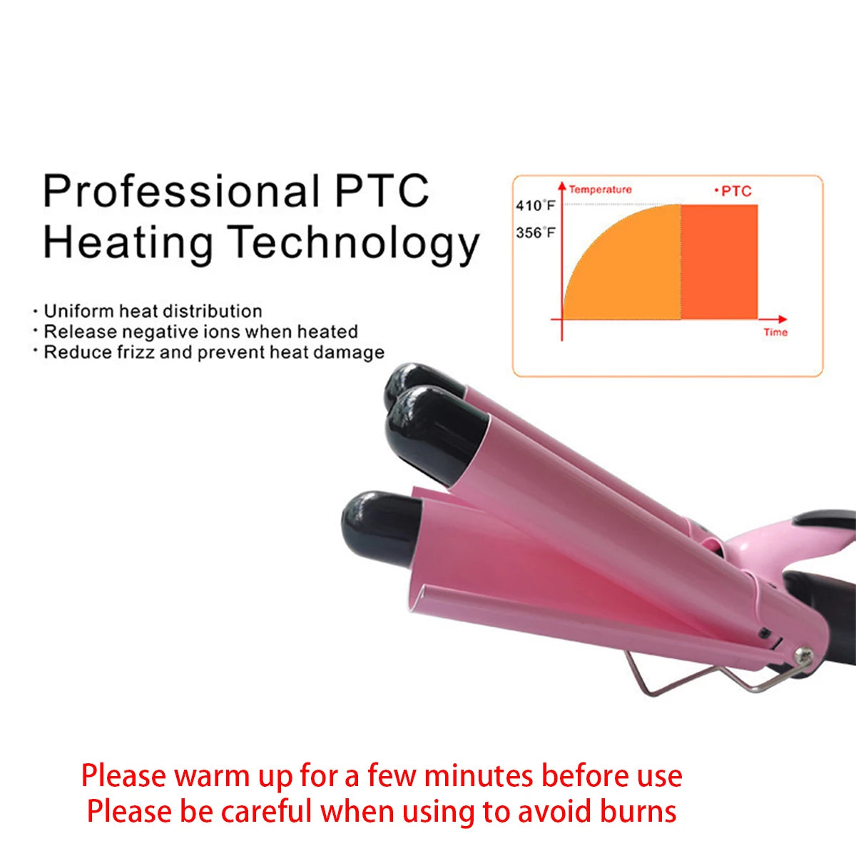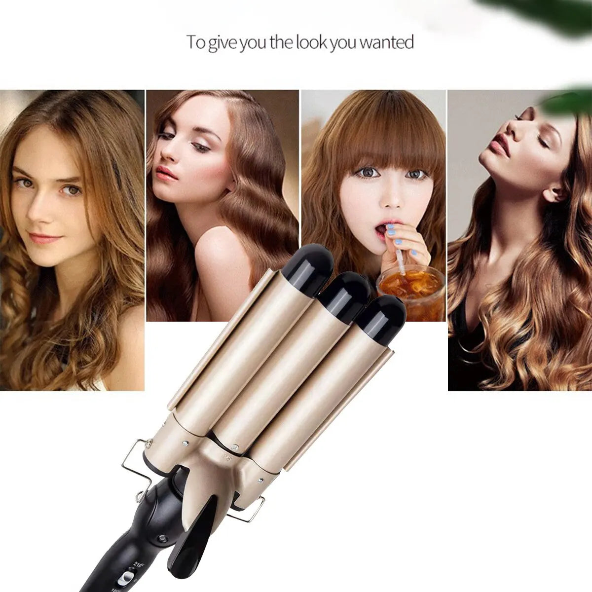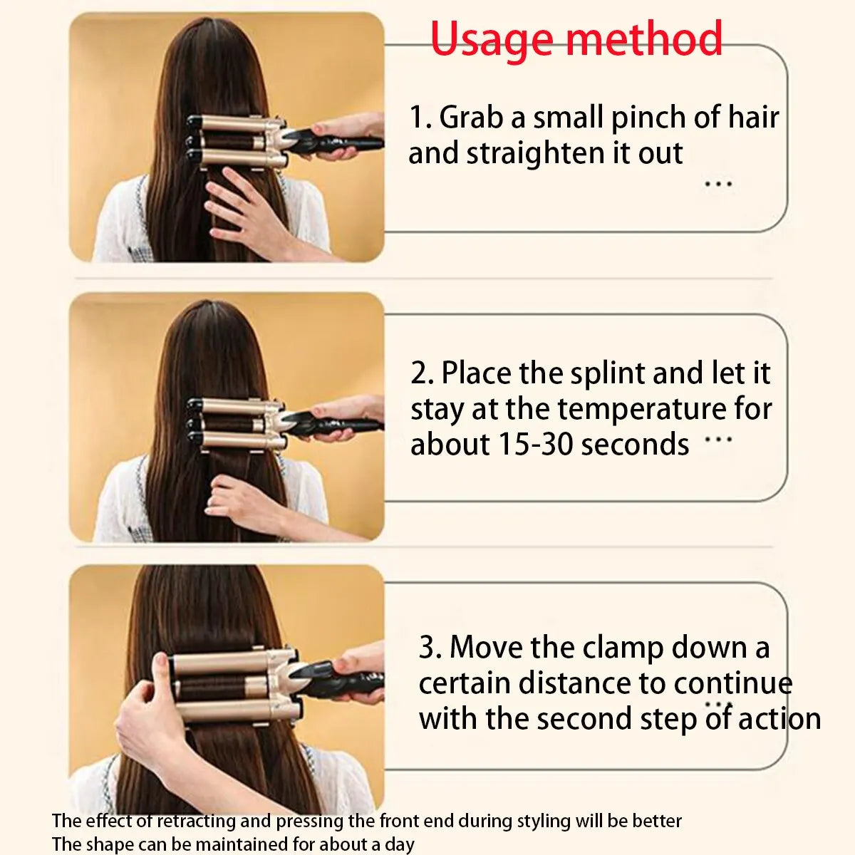 ✔️ Triple baril professionnel : crée des ondulations « S » régulières et volumineuses en un seul passage.
